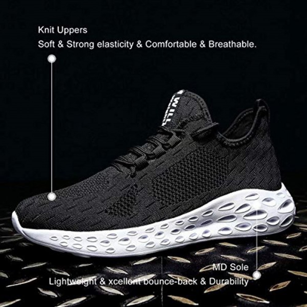 Damyuan Mens Lightweight Athletic Running Walking Gym Shoes Casual Sports Shoes Fashion Sneakers Walking Shoes Black White-8